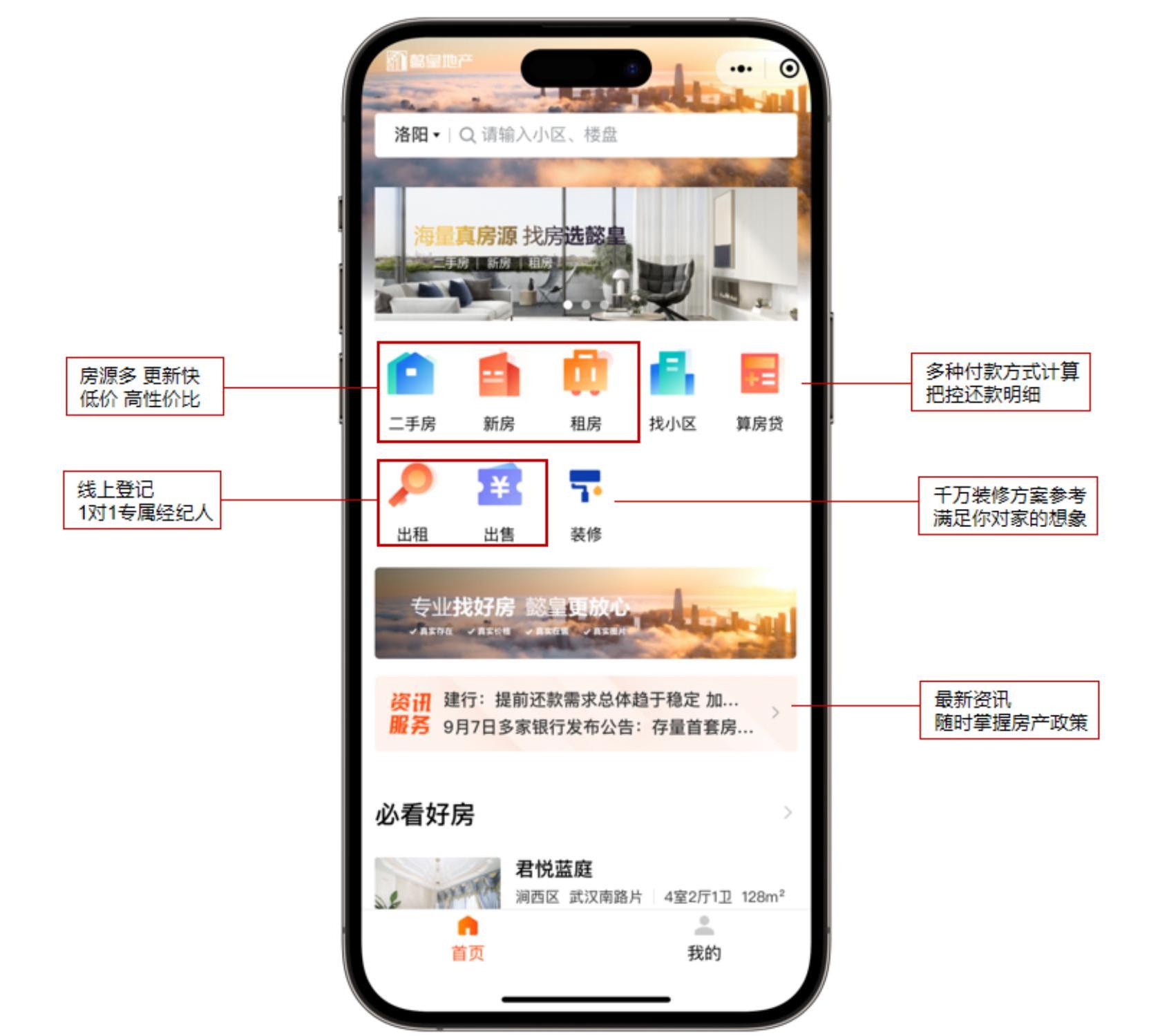 新房、二手房、租房、市場(chǎng)、裝修參考等多個(gè)模塊,滿足所有購房/租房客戶的需求。